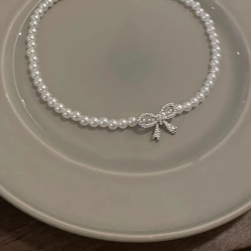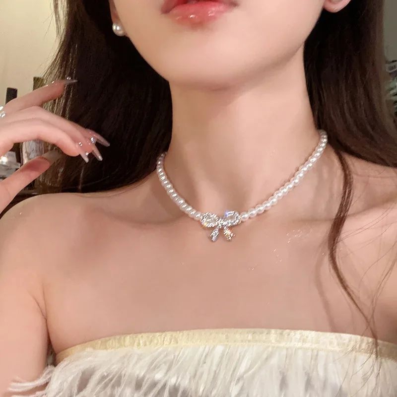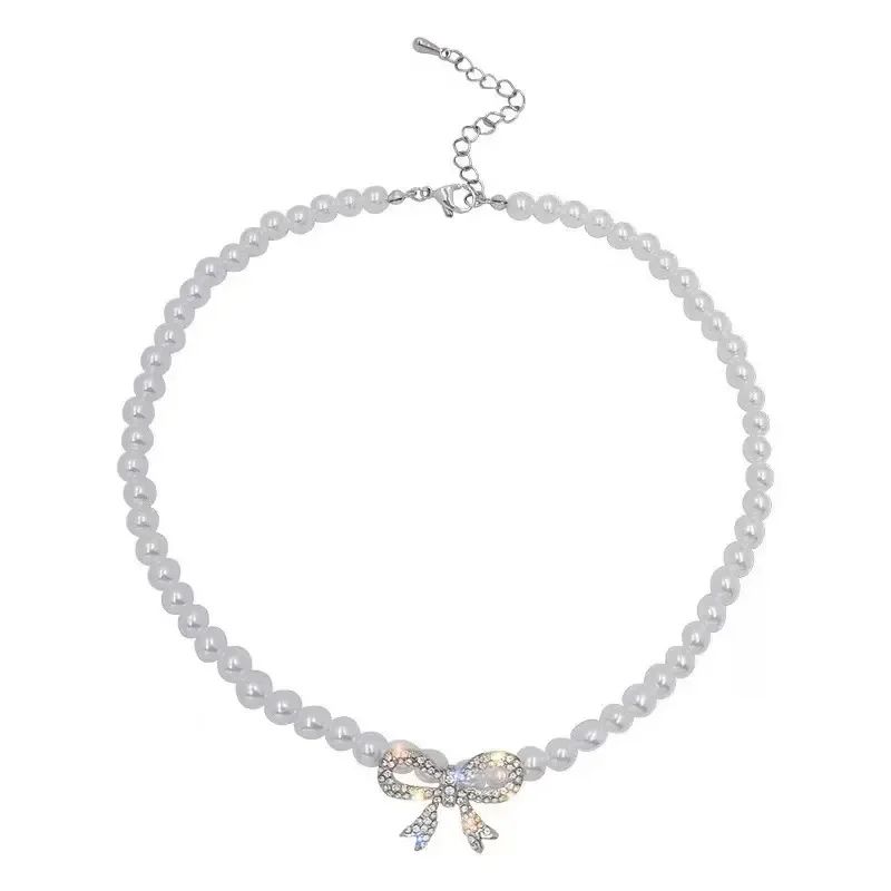 Кольє з перлинами перлами і блискучий бант намисто з великим бантом