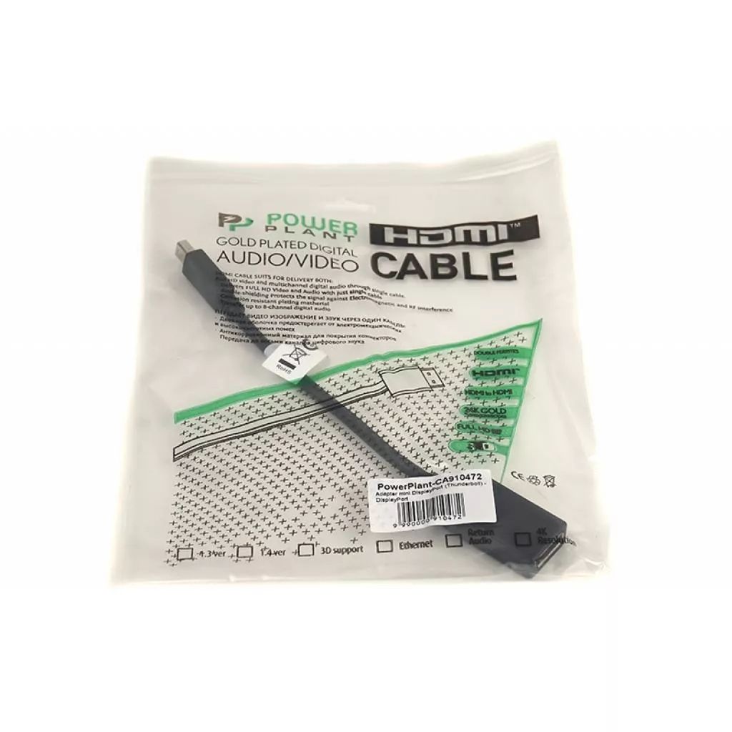 Кабель-перехідник PowerPlant mini DisplayPort (Thunderbolt) M — DisplayPort F, 0.2 м