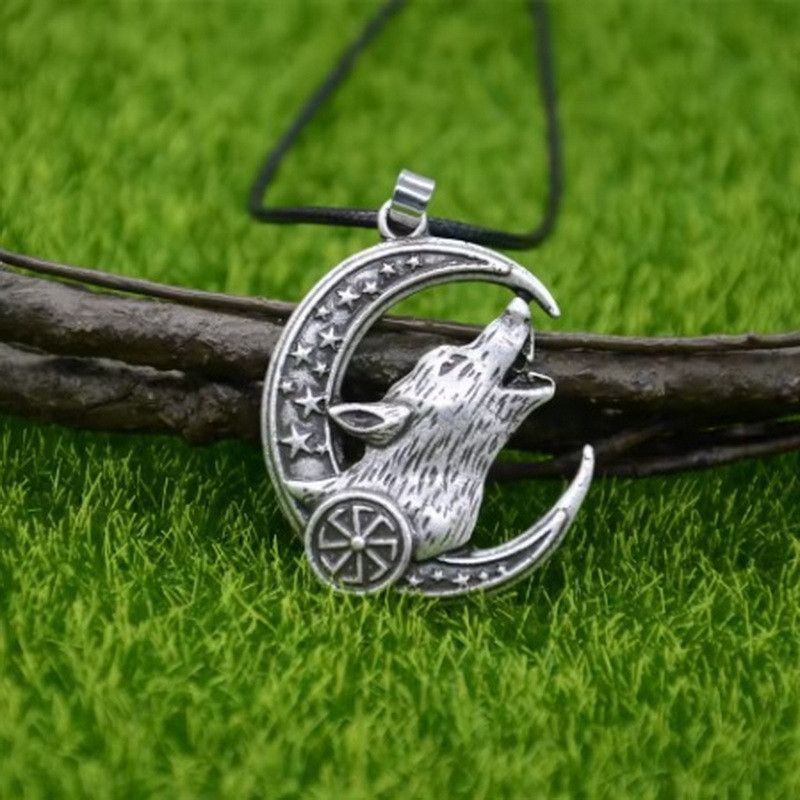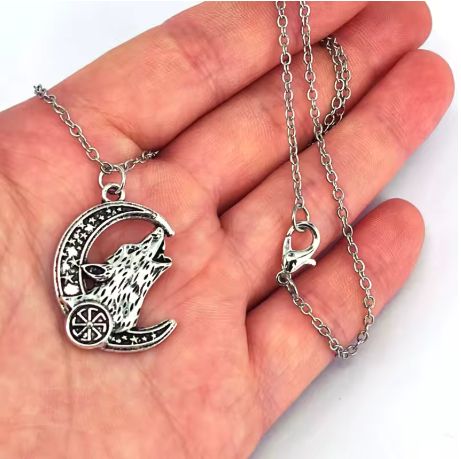 Кулон Слов'янський оберіг коловрат вовк із місяцем амулет талісман підвіска у вигляді вовка на місяці