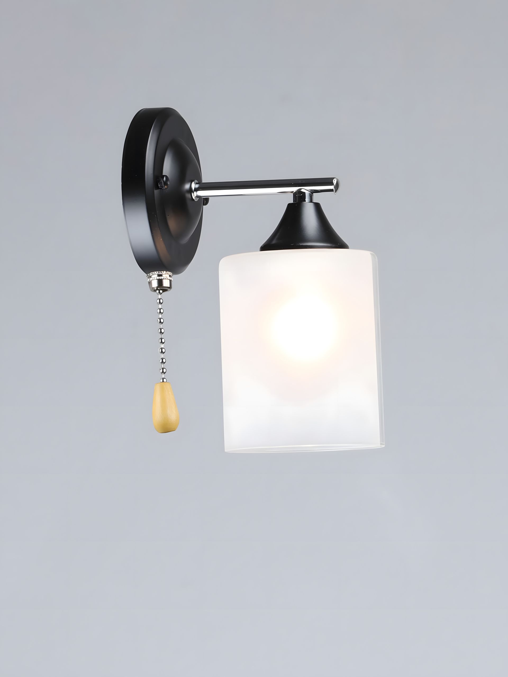 Виріб поєднує в собі міцність металу та елегантність скла. Дизайн виконаний у глибокому чорному кольорі, доповненому блискучими елементами хрому. Зі зручним патроном E27 ви легко зможете підібрати джерело світла на свій смак (зверніть увагу: лампочка не входить у комплект). Компактні розміри (L160W110H220 мм) дозволяють розмістити бра навіть у невеликих нішах або коридорах.