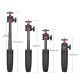 - Цей штатив оснащений трисекційним телескопічним механізмом, що дозволяє збільшити довжину до 270 мм. На кожній секції передбачені ребра жорсткості, що унеможливлюють випадкове провертання під вагою пристрою.