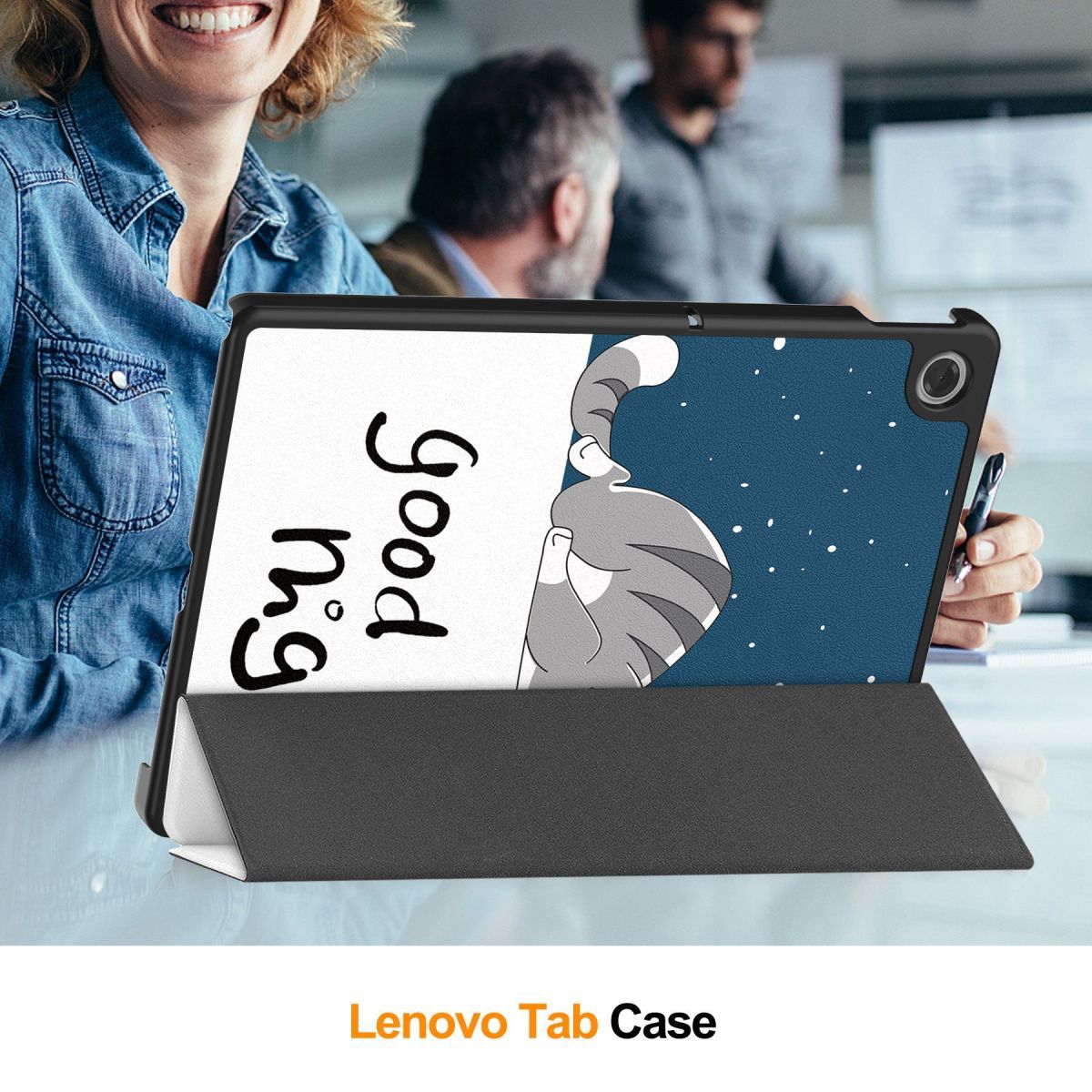 Чохол на планшет Lenovo Tab 10 2025 (модель TB311) зовні обклеєний шкірою пересованої виглядає дуже стильно, а завдяки своїй структурі чітко повторює форму планшета. Пластикова основа чохла, яка замикається на задню частину планшета, зроблена з міцного, але в той же час не товстого пластику. Для того щоб ваш планшет менше піддавався дрібним пошкодженням зсередини, пластик обклеєний мікрофіброю, яка плавно переходить в обкладинку, яка закриває екран. Зовнішній матеріал також цілісним шматком переходить із задньої кришки на передню частину яка закриває екран. Природно зроблений він виключно для вашого Lenovo Tab TB311XU TB311FU, тому всі камери, регулятори, кнопки і отвори будуть легко доступні. Малюнок найцікавіше в цій серії, жартівливі малюнки для дітей та дорослих на чохлі порадує і підійме настрій вашій дитині. А на додаток до цього є ще одна дуже зручна функція - при закритті чохла екран гасне завдяки спеціальним внутрішнім магнітам. Конструкція чохла дозволяє без особливих зусиль перетворити його на підставку, що дуже зручно, коли ви втомилися і хочете просто подивитися фільм. Ви просто складаєте пробіговану передню обкладинку по згинах і ви отримуєте трикутну підніжку Lenovo Tab 10.1 2025, а за рахунок вшитих всередину магнітів вона в такому стані тримається дуже міцно. А на додаток до цього є ще одна дуже зручна функція - при закритті чохла екран гасне завдяки спеціальним внутрішнім магнітам.