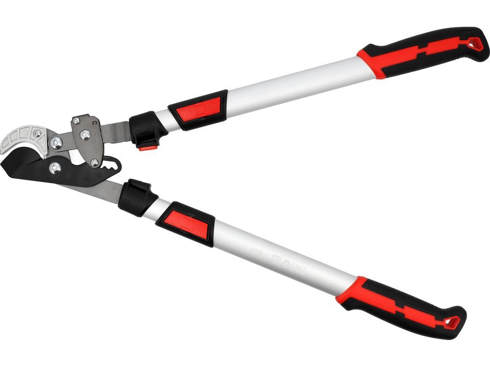 Телескопічний секатор з ковадлом і триступінчастим храповим механізмом, що збільшує силу різання, не обтяжуючи руки.