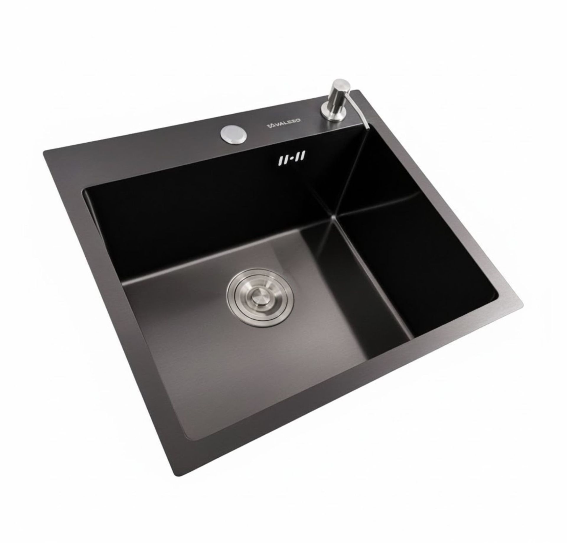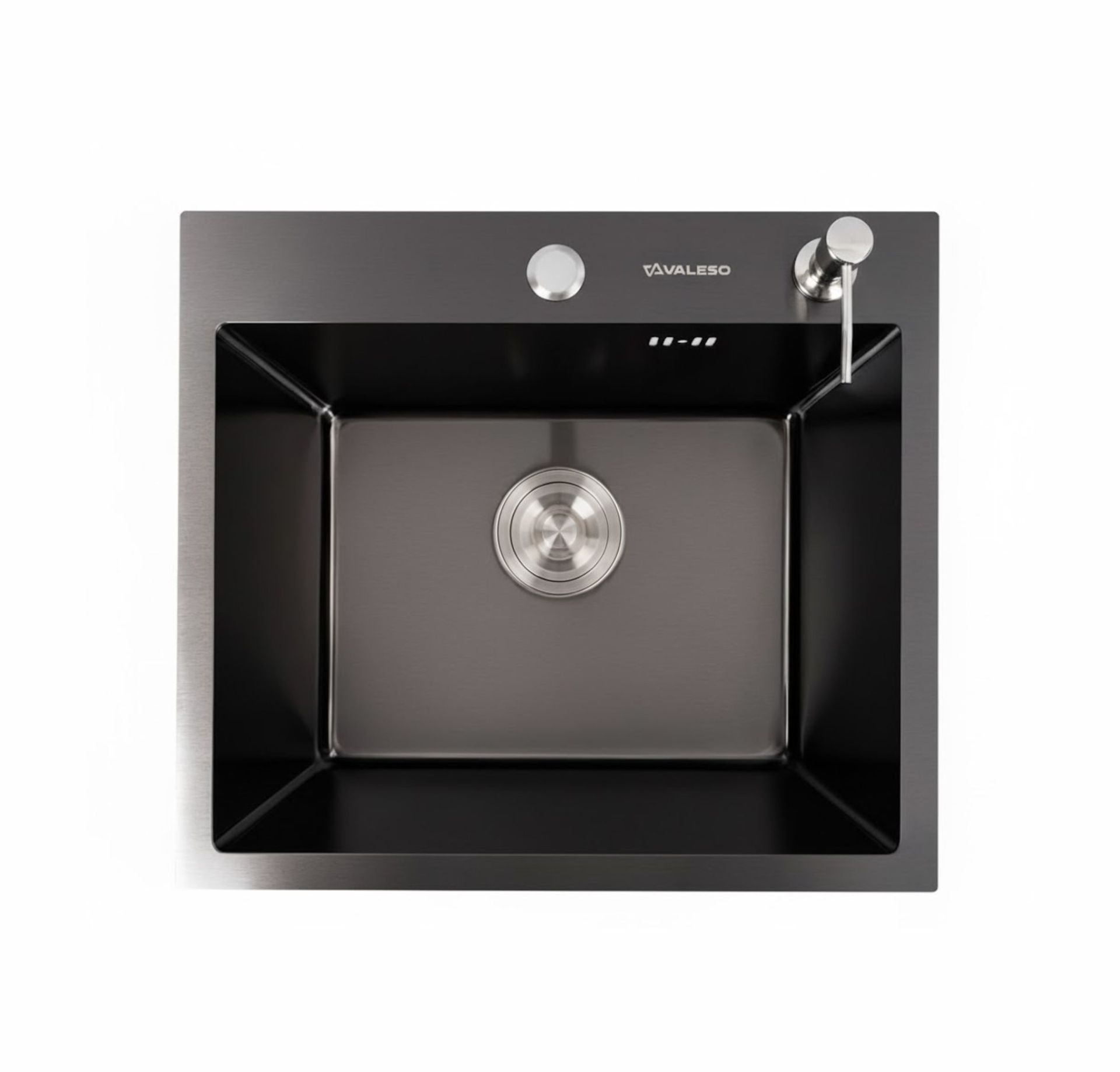 Втілення розкоші та сучасного дизайну — мийка VALESO Handmade у глибокому PVD чорному кольорі. Ця модель з нержавіючої сталі SUS 201 не лише вражає своїм виглядом, але й пропонує надзвичайну довговічність завдяки інноваційному PVD-покриттю.