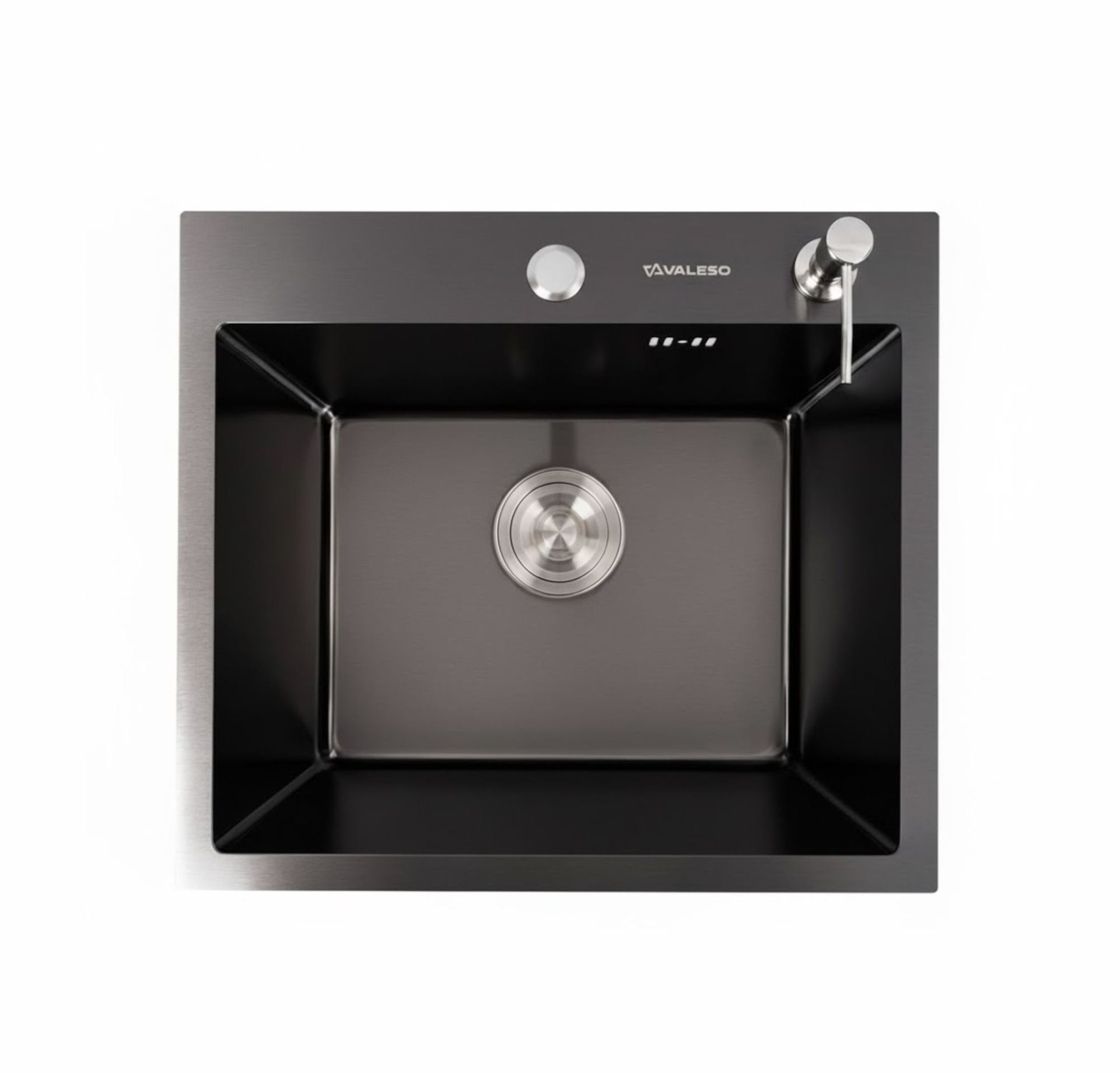 Кухонна мийка VALESO Handmade PVD 600х450х220 чорна (дозатор в комплекті)
