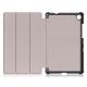 Чохол Lenovo Tab M8 TB 8505X зовні обклеєний шкірою пересованої виглядає дуже стильно, а завдяки своїй структурі чітко повторює форму планшета. Пластикова основа чохла, яка засувається на задню частину планшета, зроблена з міцного, але в той же час не товстого пластику. Для того щоб ваш планшет менше піддавався дрібним пошкодженням зсередини пластик обклеєний мікрофіброю, яка плавно переходить в обкладинку, яка закриває екран. Зовнішній матеріал також цілісним шматком переходить із задньої кришки на передню частину яка закриває екран. Природно зроблений він виключно для Lenovo Tab M8, так що всі камери, регулятори, кнопки і отвори будуть легко доступні. Конструкція чохла дозволяє без особливих зусиль перетворити його на підставку, що дуже зручно, коли ви втомилися і хочете просто подивитися фільм. Ви просто складаєте пробігану передню обкладинку по згинах і ви отримуєте трикутну підніжку Lenovo Tab M8 TB 8505X, а за рахунок вшитих всередину магнітів вона в такому стані тримається дуже міцно. А на додаток до цього є ще одна дуже зручна функція - при закритті чохла екран гасне завдяки спеціальним внутрішнім магнітам.