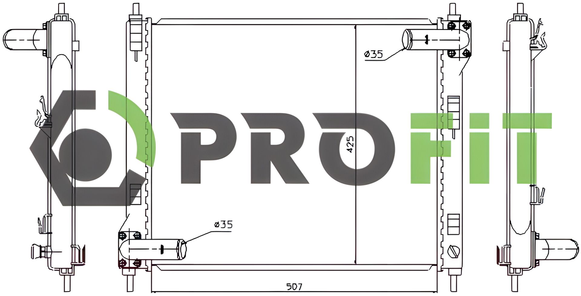 Матеріал охолодження: Матеріал алюмінієвого резервуара (радіатор): глибина мережі полімерних матеріалів [мм]: 27 ширина мережі [мм]: 425 Довжина мережі [мм]: 507 Nissan 214101KC5A 21410BA61A