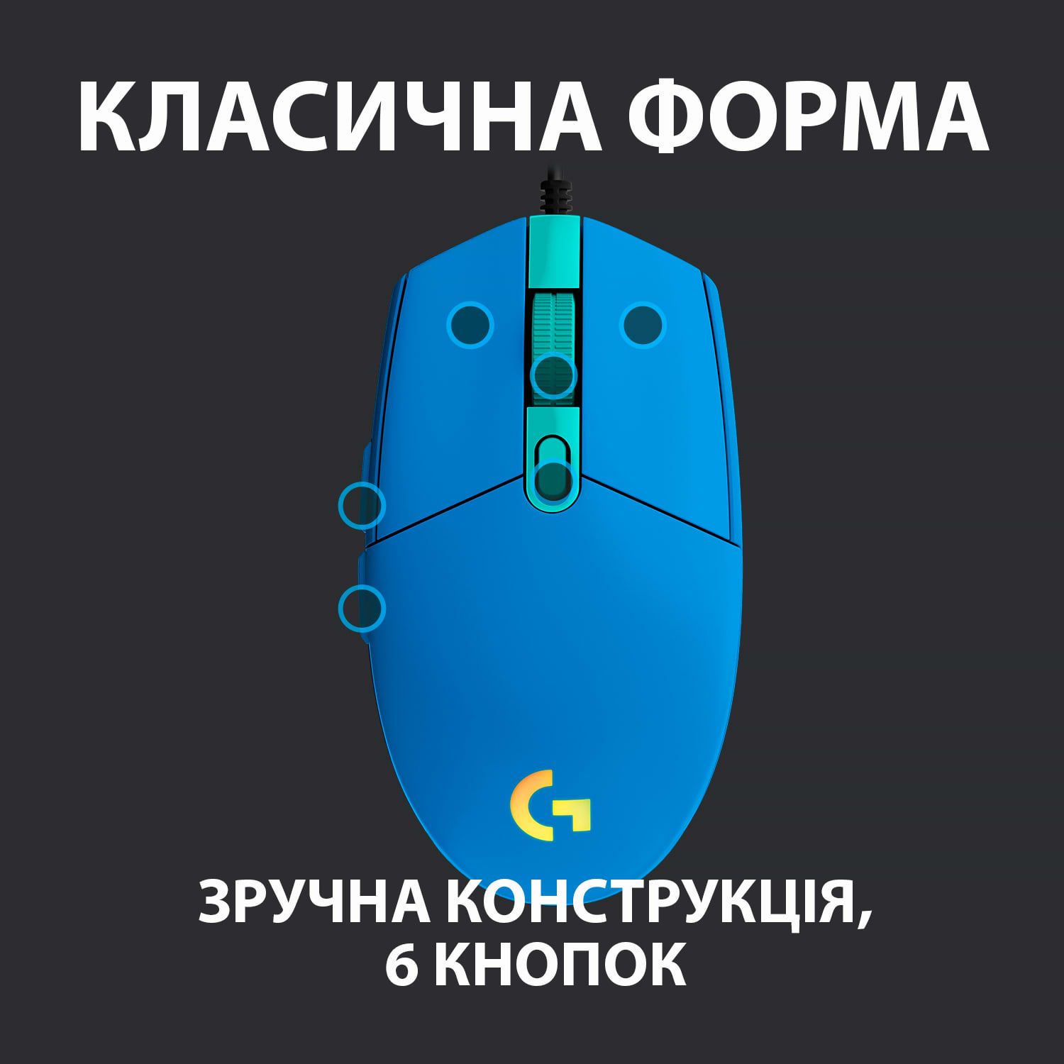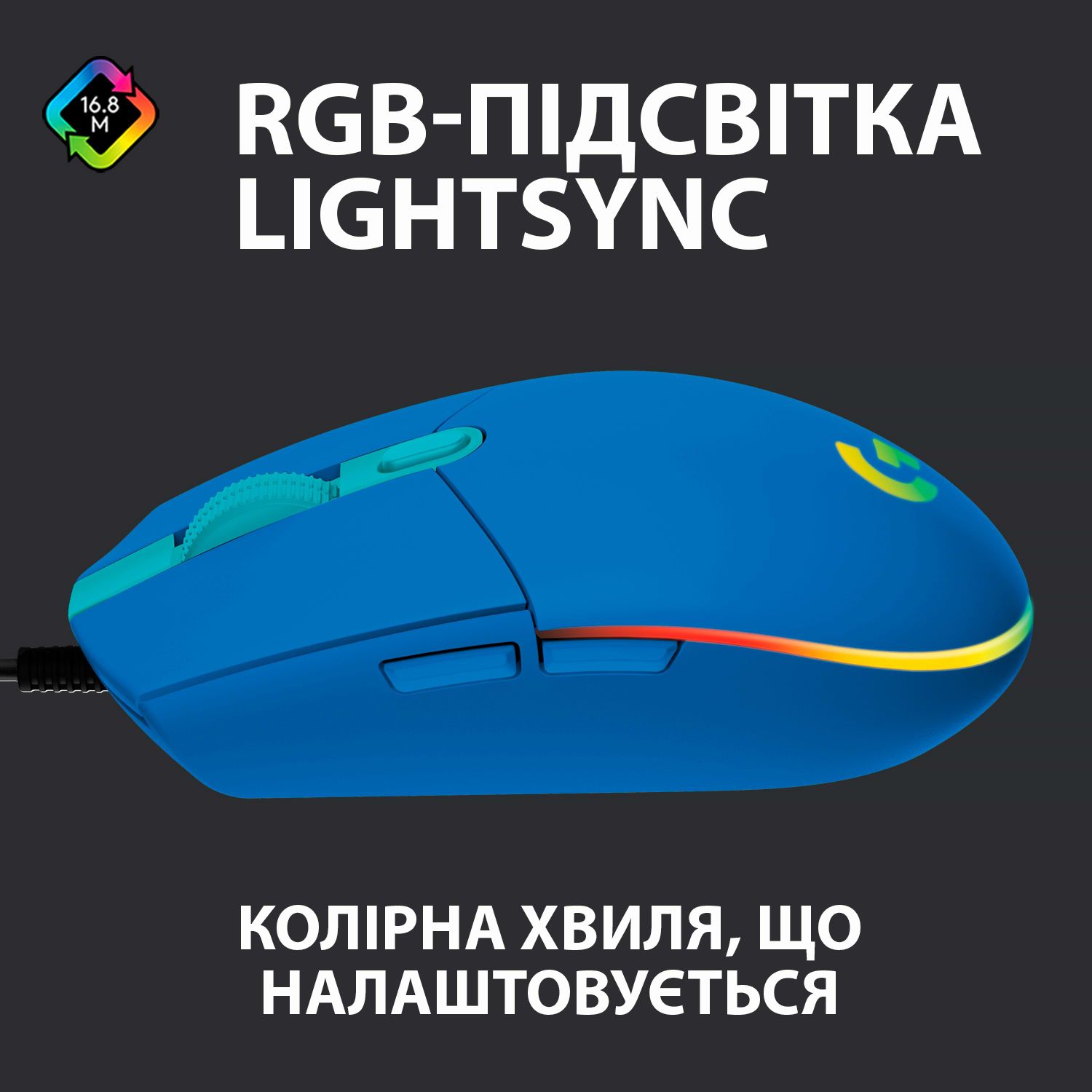 Бездротова миша Logitech G102 Lightsync, USB, 200-8000DPI, 2.1m, Blue (910-005801, 910-005810)