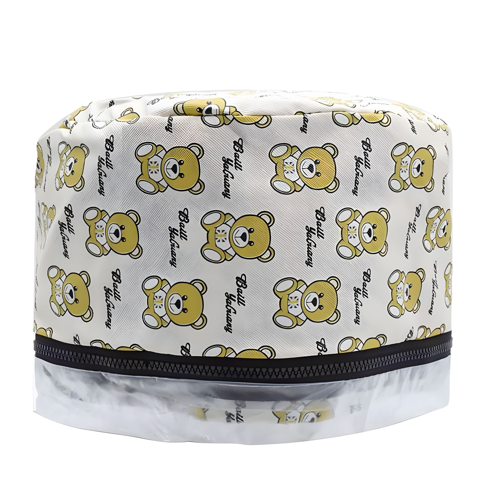 Електрична вінілова термошапка сушуар для масок, ламінування та лікування волосся (біла з ведмедиком)