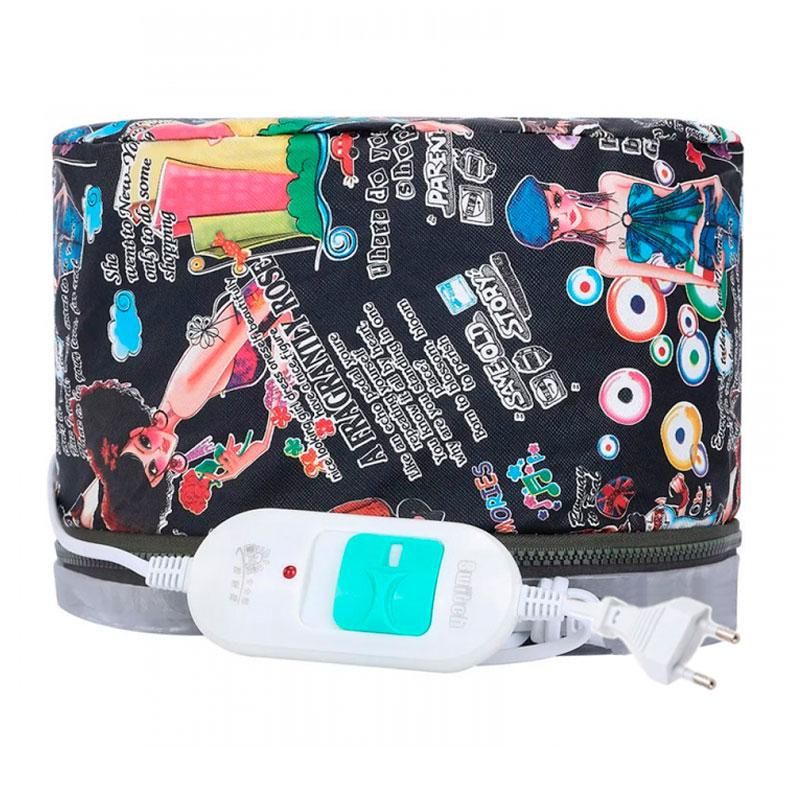 Електрична вінілова термошапка сушуар, для масок, ламінування та лікування волосся (чорна з дівчинкою)
