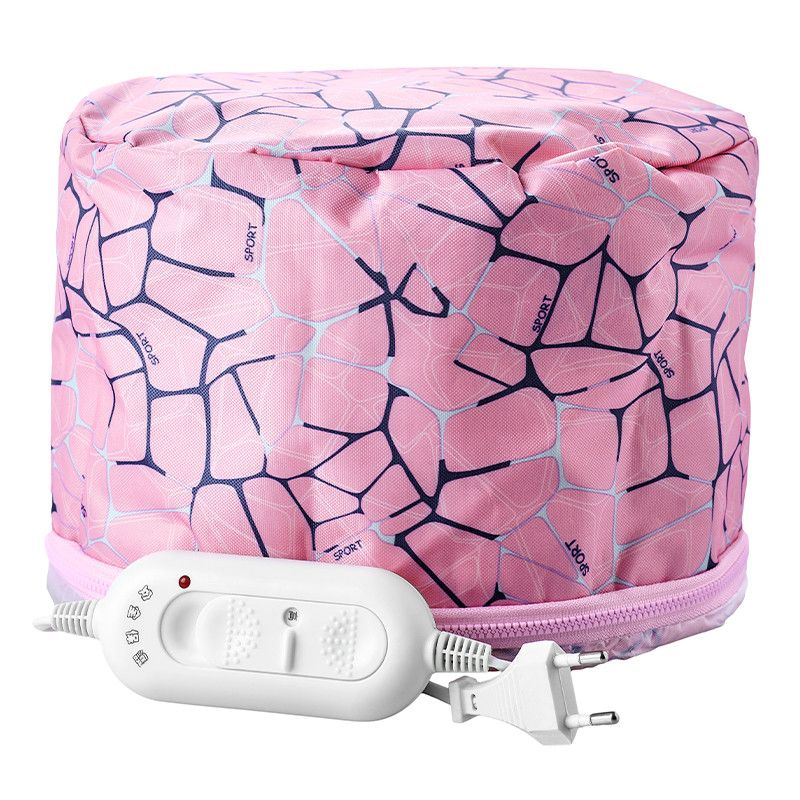 Електрична вінілова термошапка сушуар, для масок, ламінування та лікування волосся (рожева з павутинкою)