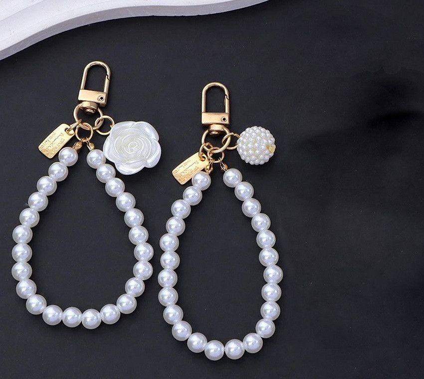 Брелок жіночий з перлинами перли і квітка куля прикраса на телефон сумочку
