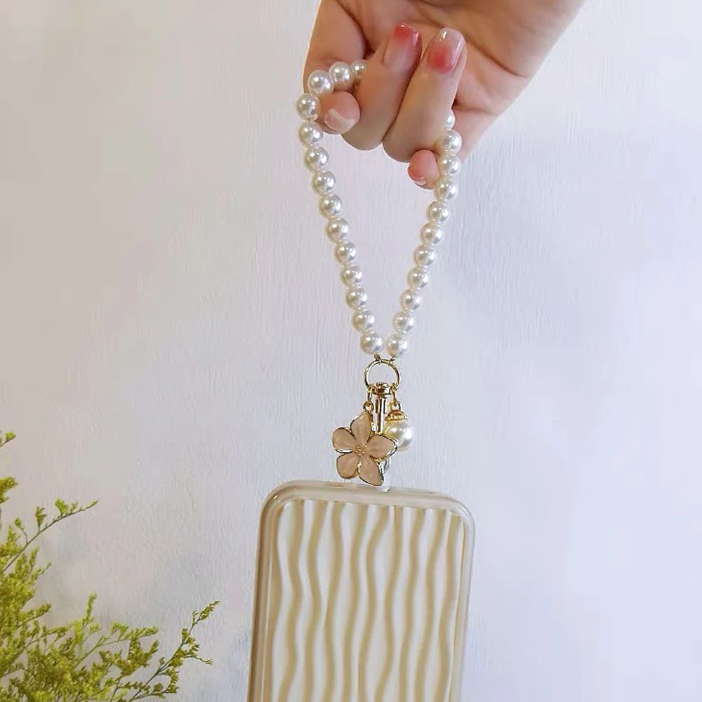 Брелок жіночий з перлинами перли і квітка сакура прикраса на телефон сумочку