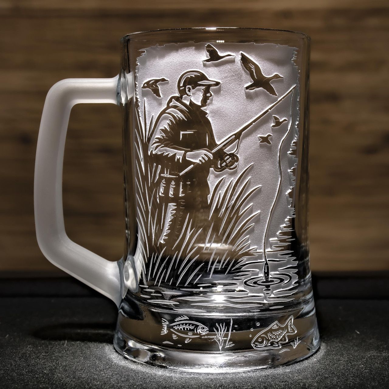 Бокал для пива з гравіюванням Момент клювання - оригінальний подарунок для любителя риболовлі у подарунковій коробці