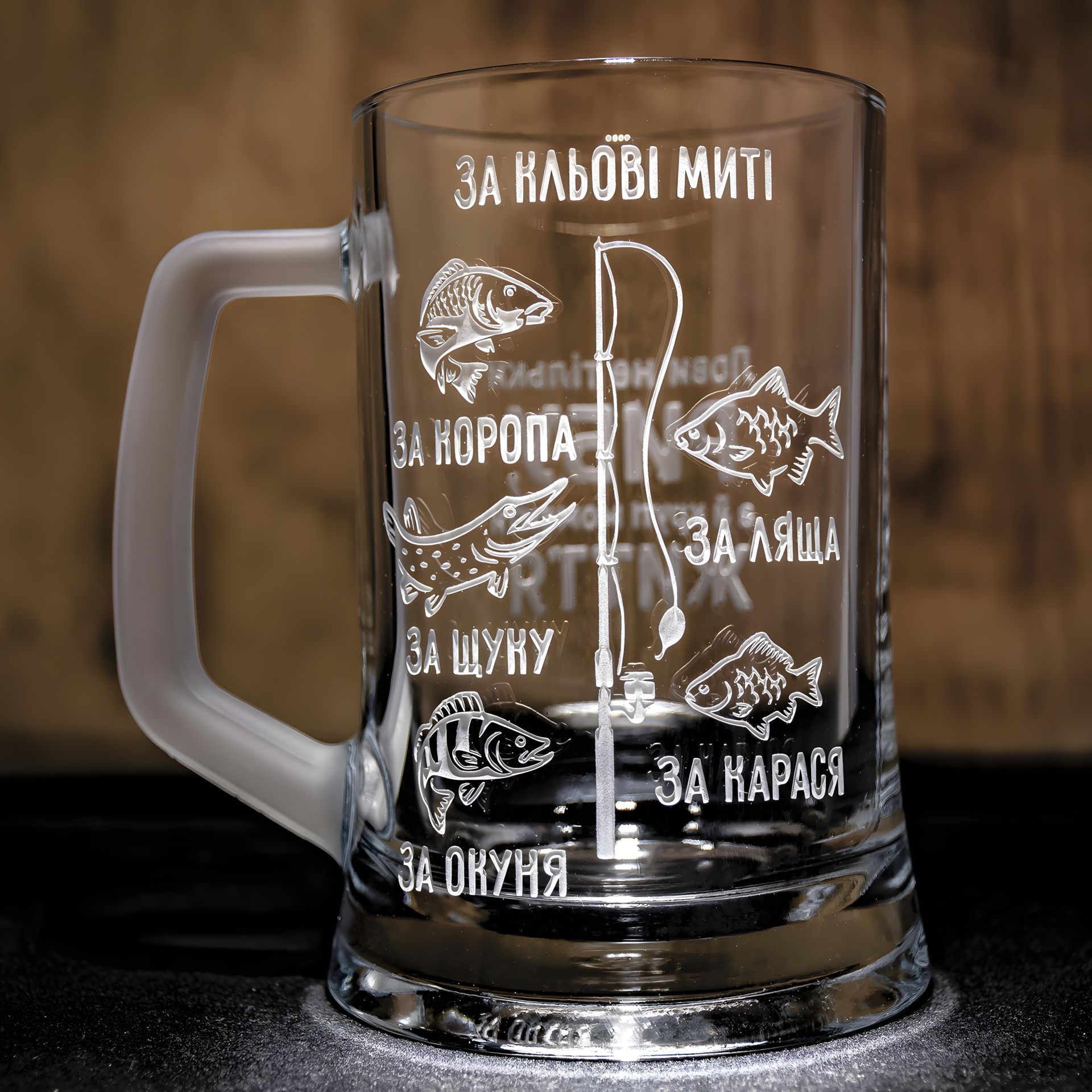 Бокал для пива з гравіюванням Рибацька шкала улову - унікальний подарунок для справжнього рибалки - Виключний стиль