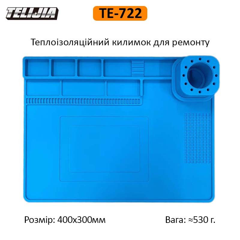 Теплоізоляційний силіконовий килимок TELIJIA TE-722 для паяння та ремонту техніки, 400x300mm, Blue