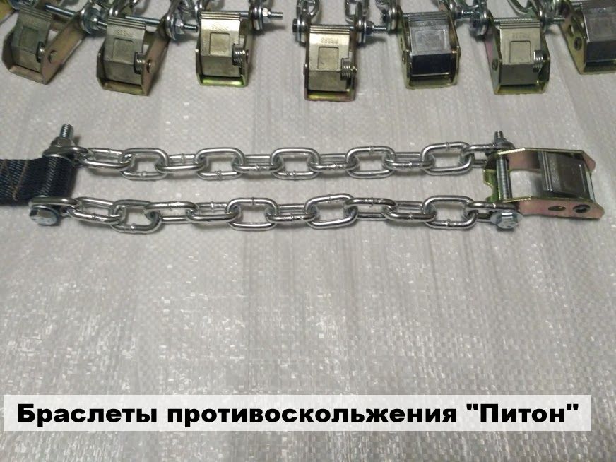 Ланцюга (браслети) протиковзання універсальні,посилені (з пружинним замком і з храповим механізмом (трещітка)Легко встановлюються та надійно фіксуються на колесі автомобіля.