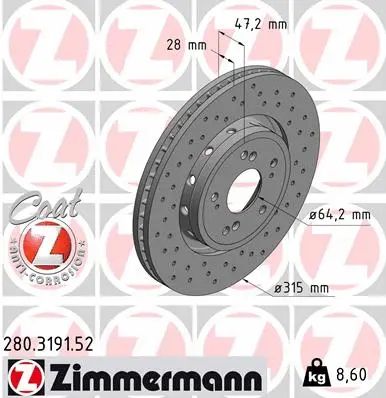 Диск гальмівний HONDA HONDA CR-V, HONDA CR-V IV, ZIMMERMANN (280319152)