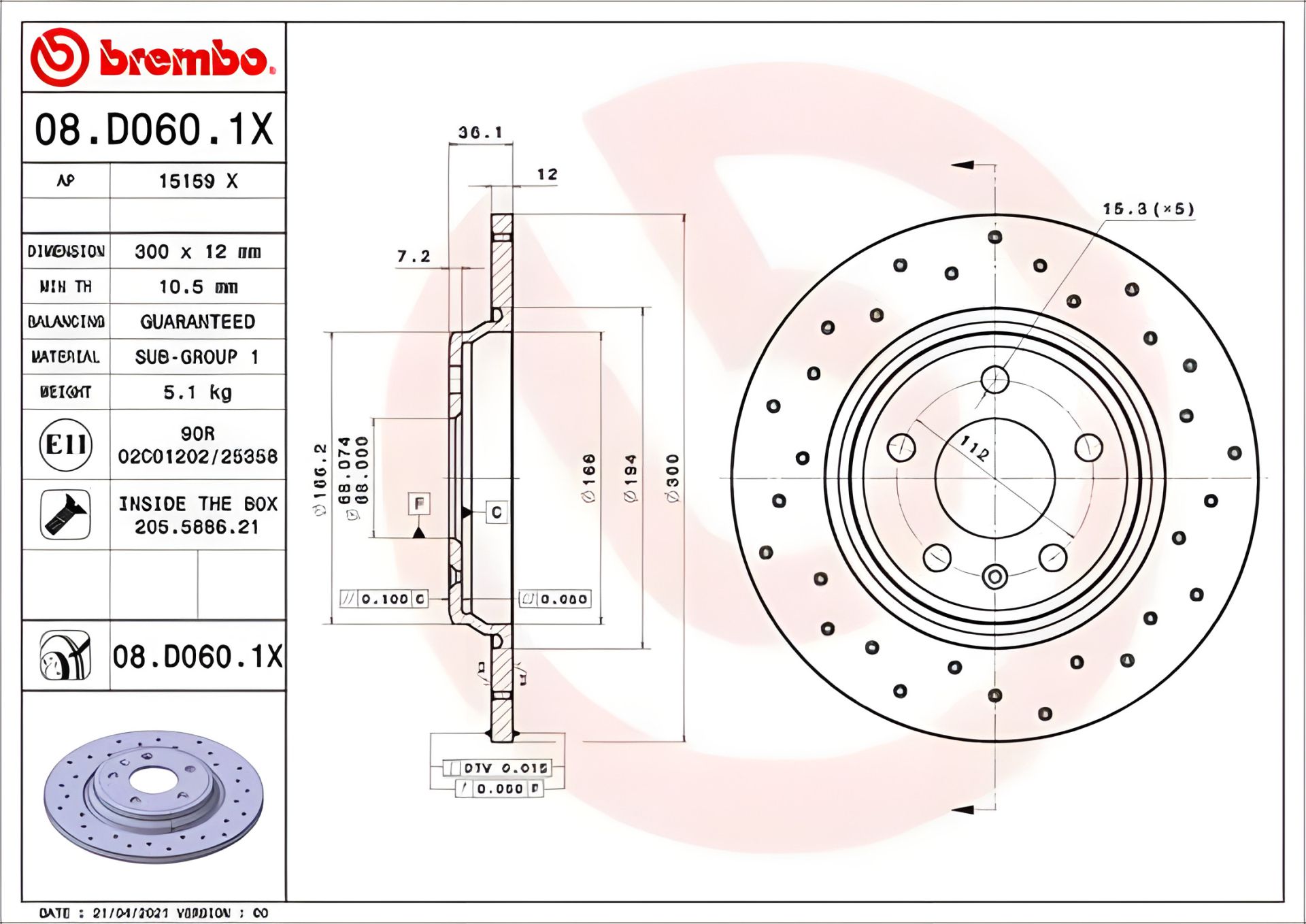 Гальмівний диск AUDI (FAW), VW POLO, BREMBO (08D0601X)