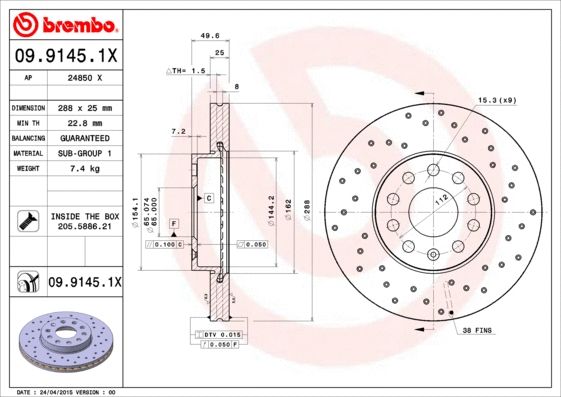 Диск гальмівний AUDI (FAW), CUPRA LEON, BREMBO (0991451X)