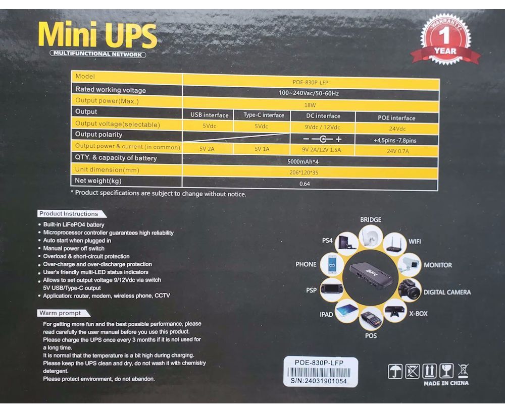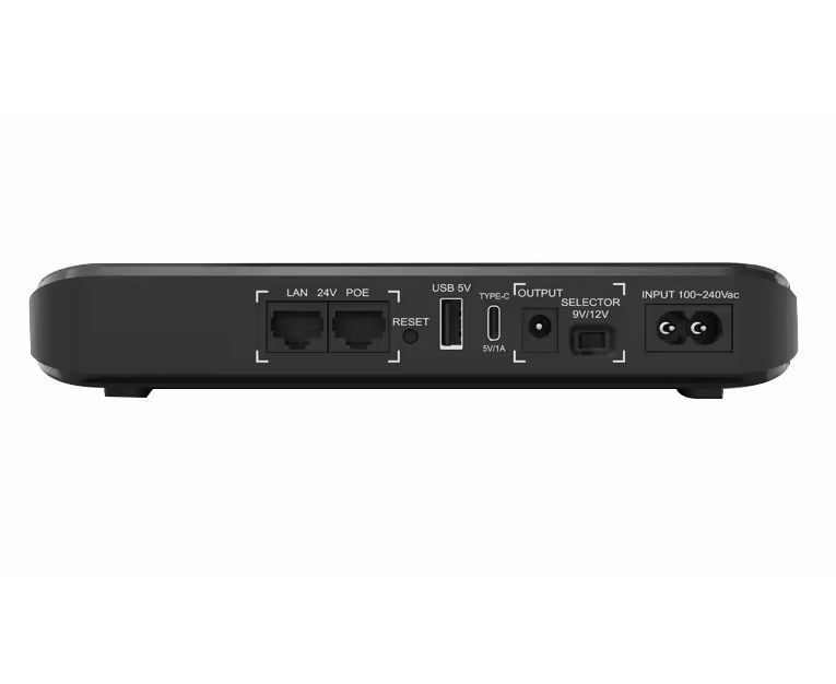 - Модель підтримує DC-виходи 5V, 9V, 12V та PoE 24V, що робить її сумісною з більшістю мережевих пристроїв — роутерами, модемами, IP-камерами, терміналами, телефонами та іншою електронікою.