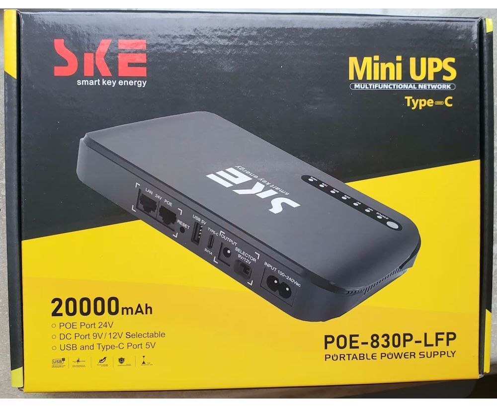 ДБЖ UPS SKE POE-830P-LFP Black (20000mAh, 18W, 1USB, 1Type-C, 1*9-12V, POE 24V, LiFepo4) для роутера
