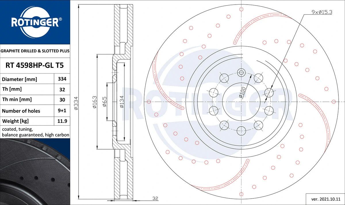Диск гальмівний AUDI TT, VW GOLF, ROTINGER (RT4598HPGLT5)