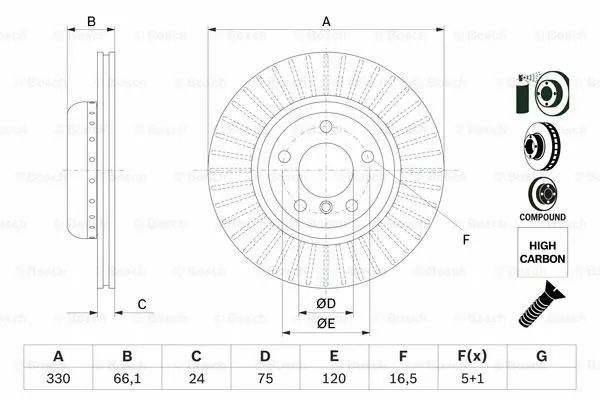 Диск гальмівний BMW 5, BMW 5, BMW 34116794429, BOSCH (0986479E07)