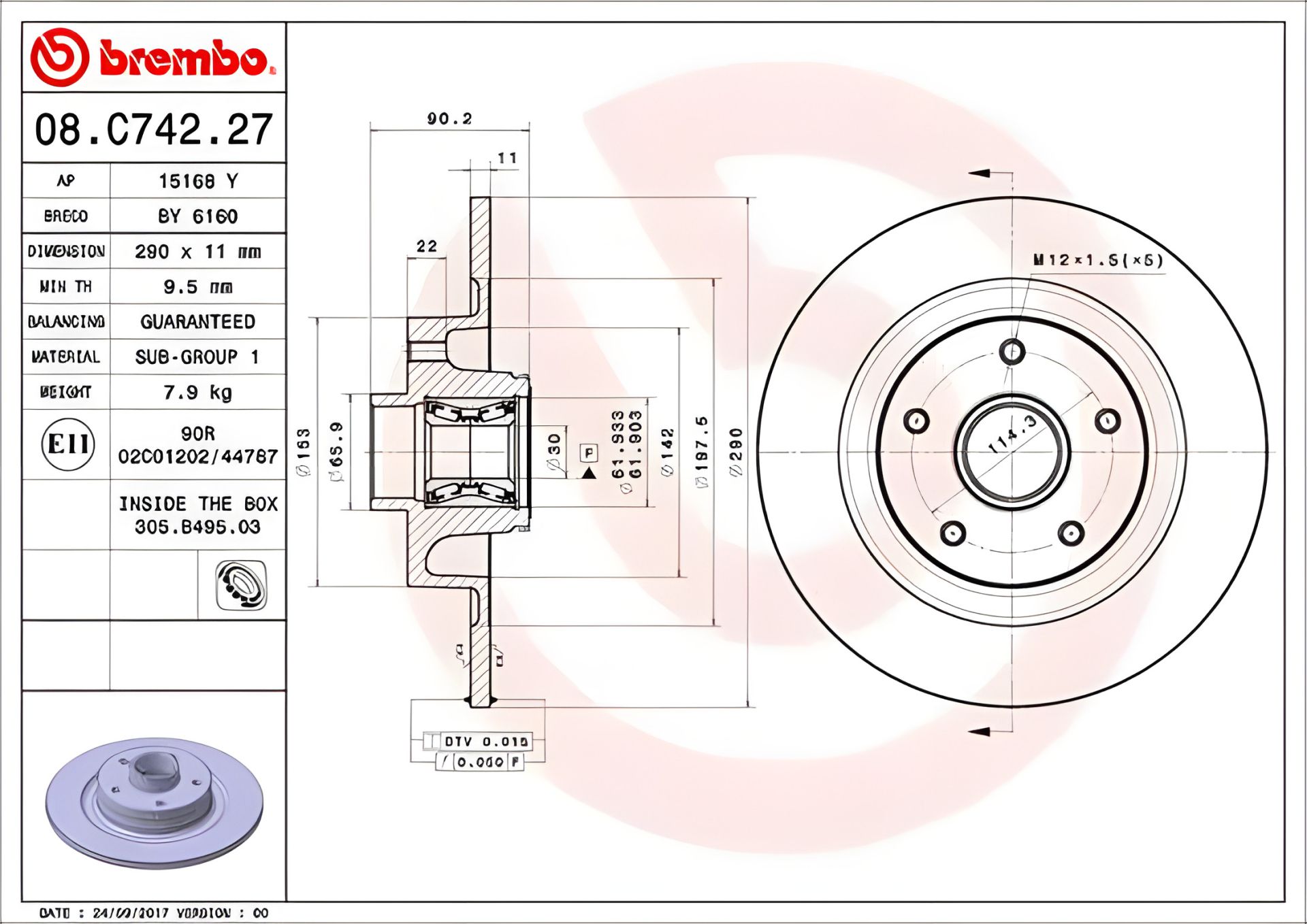 Гальмівний диск RENAULT MEGANE, BREMBO (08C74227)