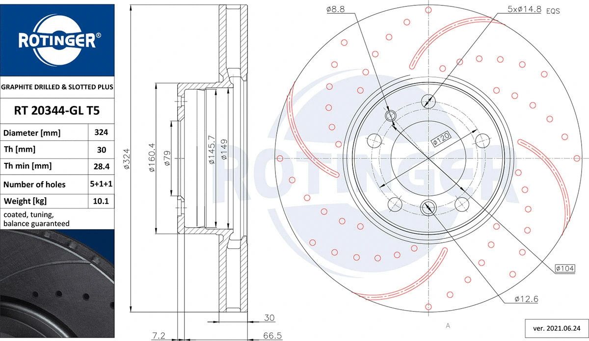 Диск гальмівний BMW 5, ROTINGER (RT20050GLT5)