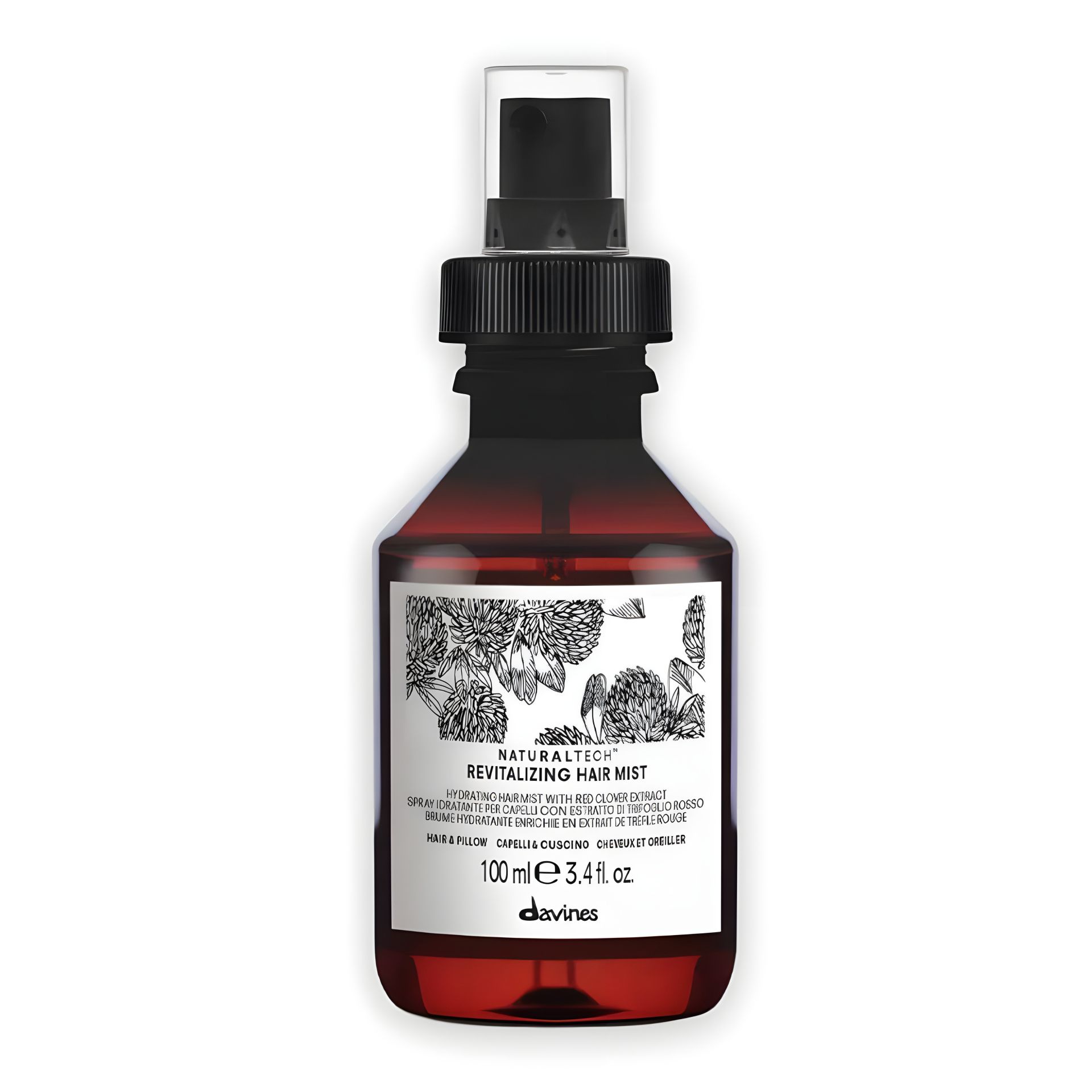 Davines Naturaltech Revitalizing Hair Mist — легкий незмивний спрей-міст для щоденного зволоження та пом'якшення волосся; освіжає довжину, допомагає знизити сухість і робить волосся слухнянішим, підходить усім типам, зокрема тонким і пофарбованим.