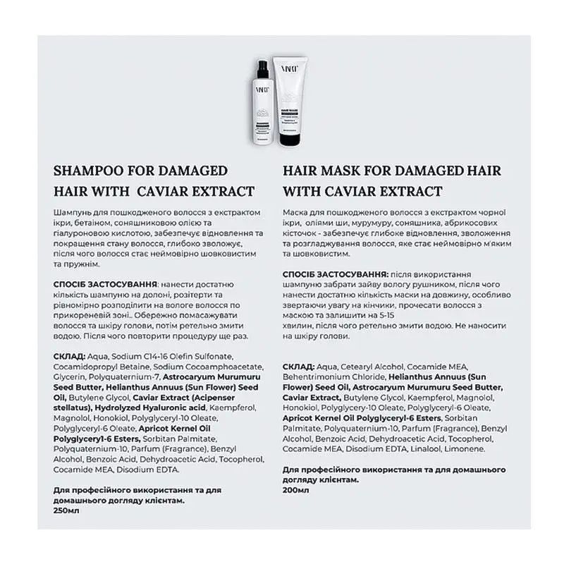Маска VIART Hair Mask with Caviar Extract – ефективний засіб для глибокого відновлення, зволоження та розгладжування пошкодженого волосся. Завдяки активним компонентам, що входять до складу засобу, продукт надає локонам м’якість та шовковистість.