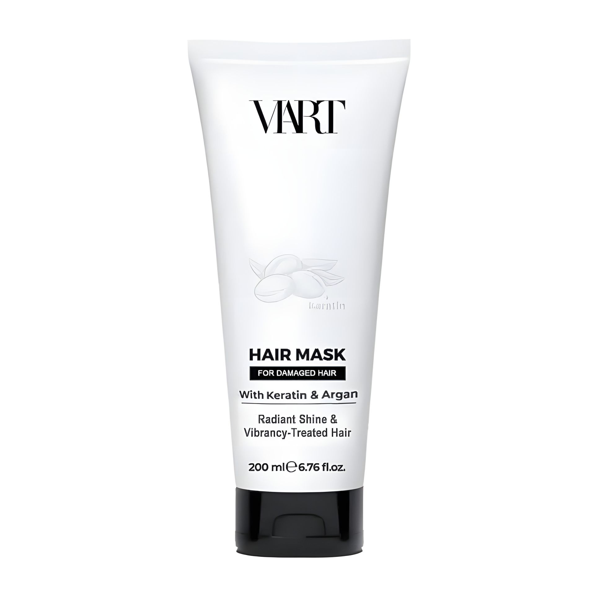 Mаска VIART Hair Mask with Keratin & Argan Oil розроблена для інтенсивного догляду за фарбованим волоссям, яке потребує відновлення, живлення та захисту кольору. Унікальна формула містить кератин, арганову, кокосову та мигдальну олії, а також вітаміни В5 і В3, що забезпечують комплексну дію та помітне покращення структури волосся вже після першого застосування.