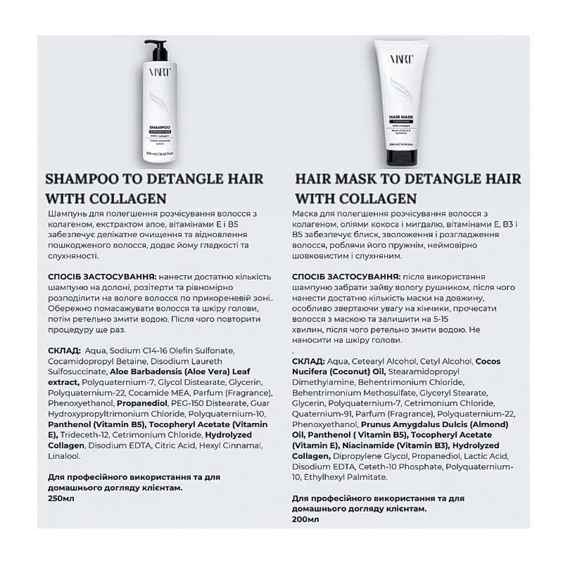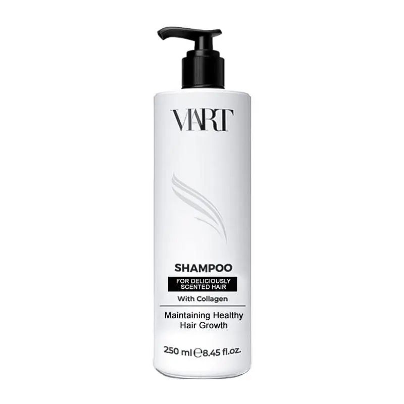 Шампунь VIART Shampoo with Collagen – засіб для дбайливого очищення пошкодженого волосся, який має відновлюючі властивості та полегшує розчісування і укладання. Завдяки вмісту колагену, екстракту алое та вітамінів, продукт надає волоссю гладкість та робить його м’яким і слухняним.