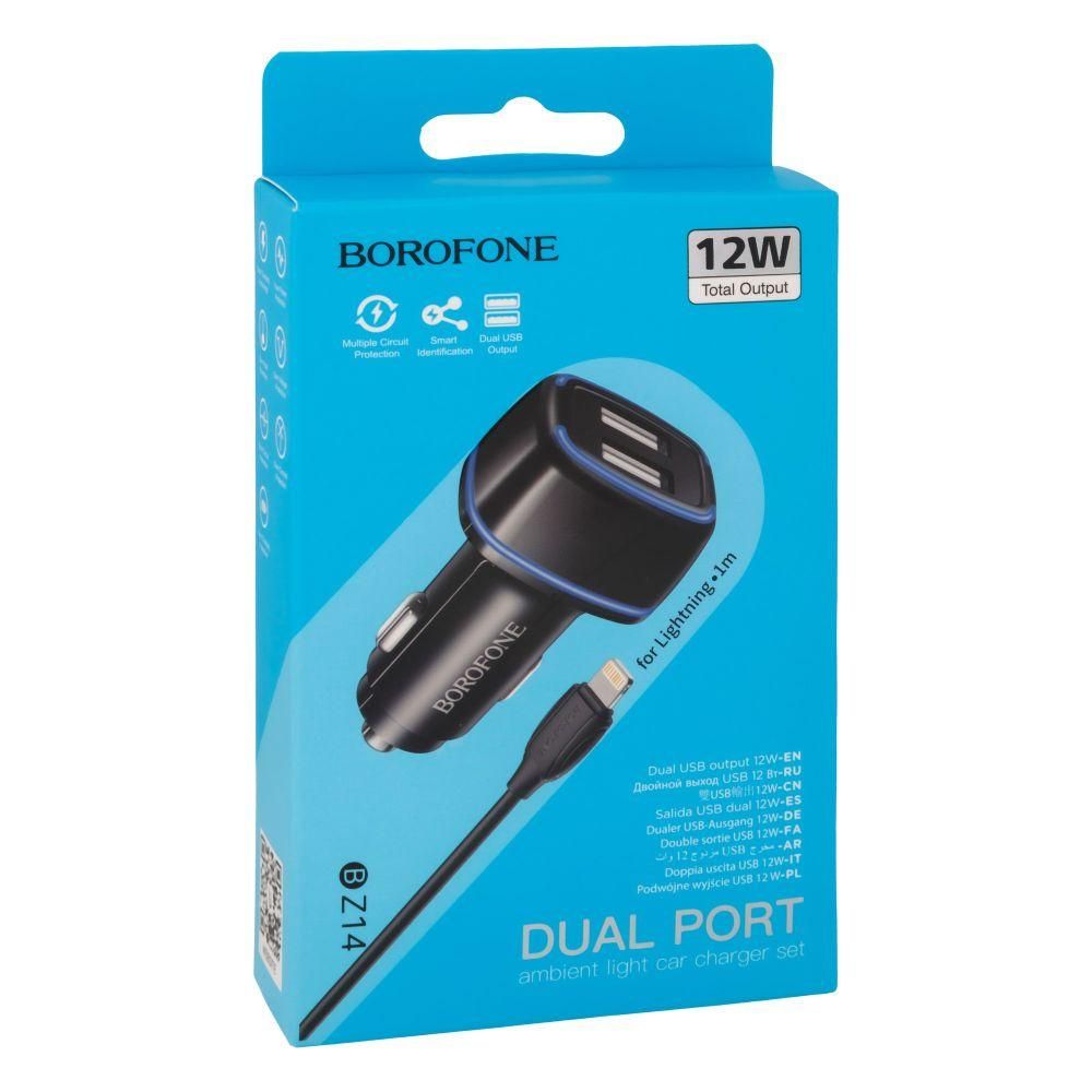 Автомобільний Зарядний Пристрій Borofone BZ14 Lightning 2USB2.4A