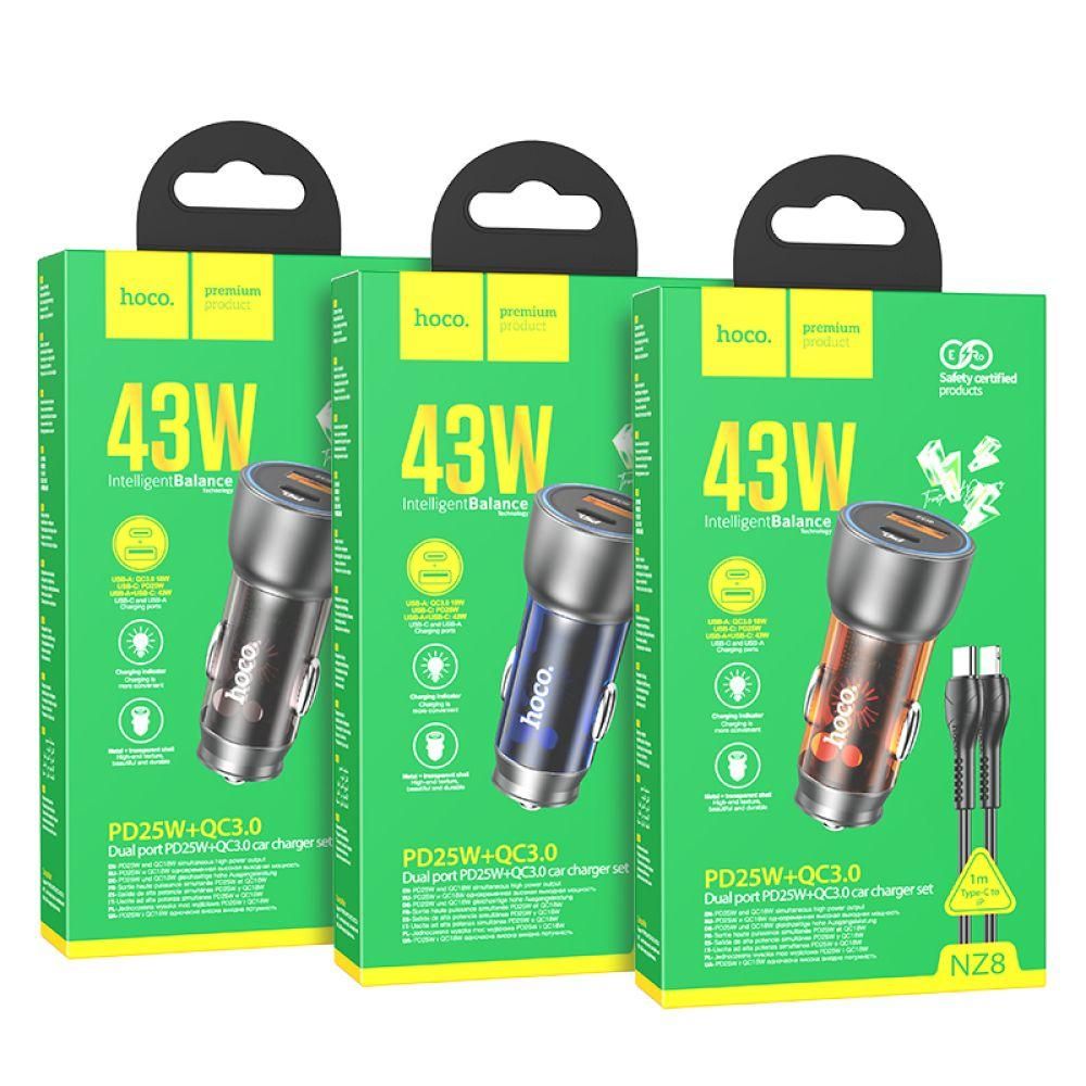 Автомобільний Зарядний Пристрій Hoco NZ8 Sprinter 43W PD25W+QC3.0 Type-C to Lightning