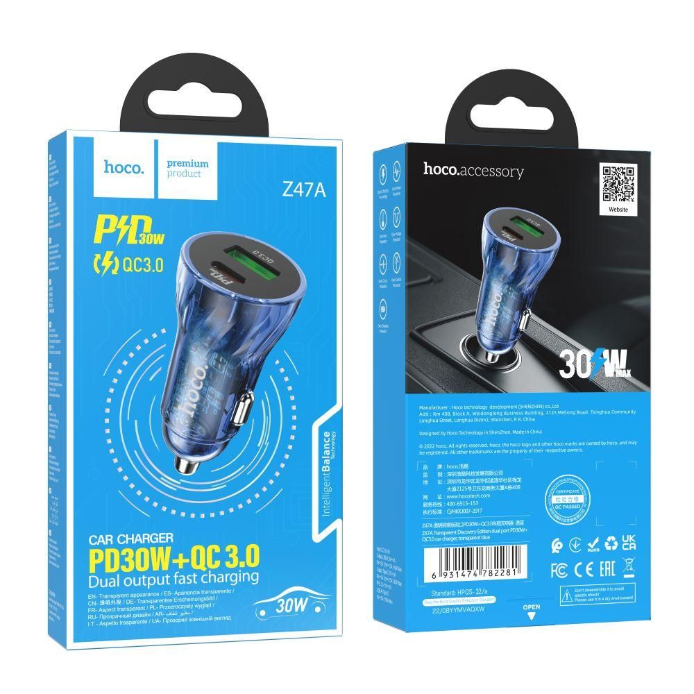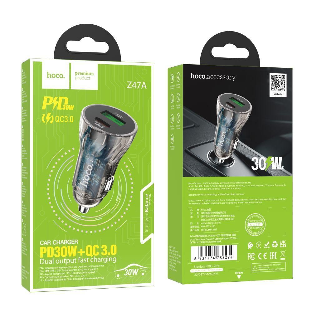 Автомобільний Зарядний Пристрій Hoco Z47A Transparent PD30W+QC3.0