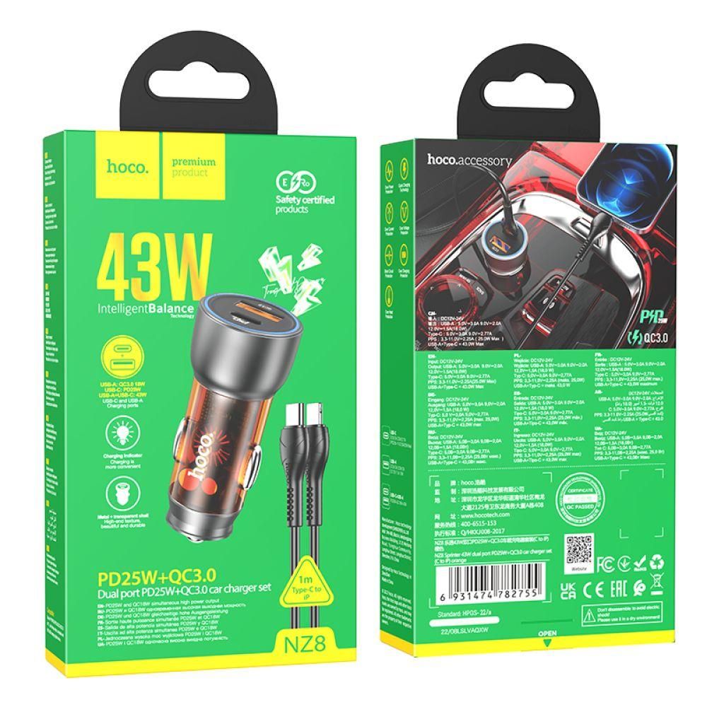 Автозарядний пристрій Hoco NZ8 Sprinter 43W PD25W+QC3.0 Type-C to Lightning Колір Коричневий
