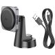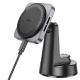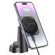 Hoco HW16 Speed — це оригінальне поєднання магнітного автотримача та бездротового зарядного пристрою. Воно стане чудовим вибором для тих, хто цінує комфорт і безпеку під час водіння, а також хоче мати можливість заряджати свій смартфон без дротів. Його стильний дизайн лаконічно доповнить функціонал панелі будь-якого сучасного авто, а практична конструкція забезпечить максимально комфортну повсякденну експлуатацію. Пристрій складається з двох основних частин, які з'єднані кульовим шарніром для настроювання оптимального кута огляду екрана, що утримується ґаджета. Для його виготовлення використовуються якісні електронні компоненти, ударостійкий ABS пластик, силікон і потужні магніти, що гарантує абсолютно безпечний процес заряджання та дає змогу йому витримувати вантаж вагою до 400 грамів. Магнітний майданчик бездротової зарядки зроблений повністю відповідно до технології MagSafe для фіксації та заряджання iPhone 12 і новіших, а також інших смартфонів із підтримкою технології Qi та заздалегідь встановленим металевим кільцем на задній панелі. Процес бездротового заряджання відбувається з відстанню від 0 до 6 мм і ефективністю перетворення енергії понад 75%. Потужність на виході підбирається автоматично та може становити 5, 7.5, 10 і 15W. Модель обладнана LED-індикатором для контролю процесу заряджання та роз'ємом Type-C для під'єднання до джерела живлення. Вхідна сила струму становить 2 A за напруги 5 V, 1.67 А за 9 V і 1.5 А за 12 V. За допомогою надійної основи з вакуумною присоскою та пластини з клейкою основою, тримач може встановлюватися на торпедо автомобіля в найзручнішому та найвідповіднішому місці.