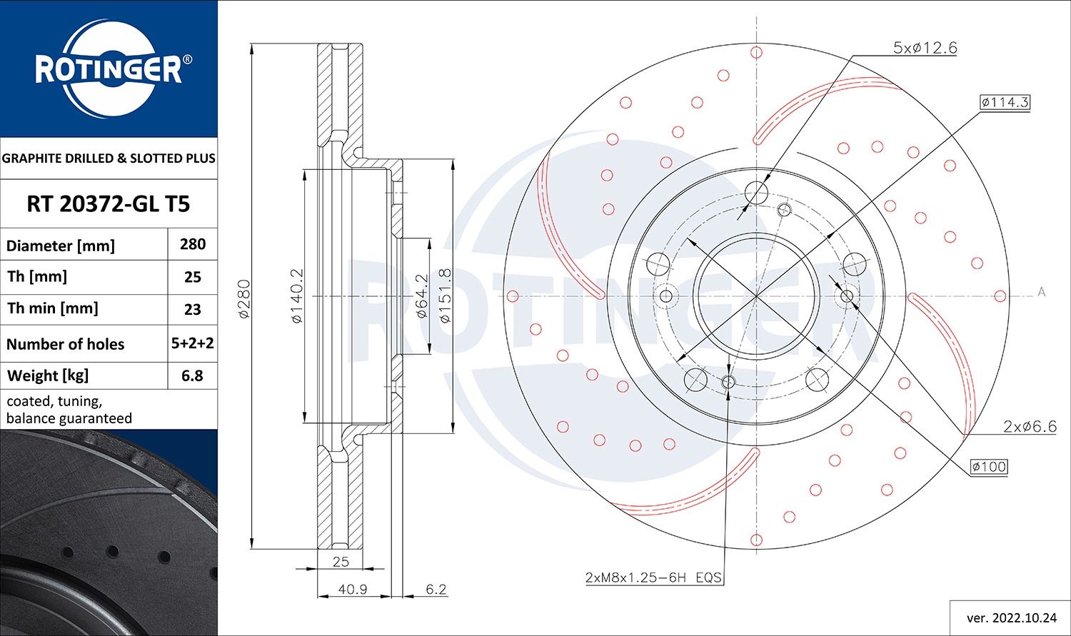 Диск гальмівний HONDA ACCORD, ROTINGER (RT20372GLT5)