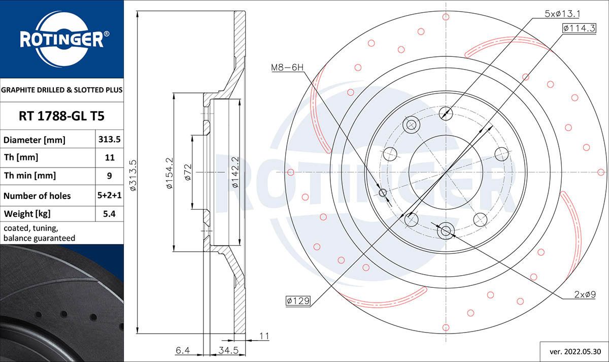 Диск гальмівний MAZDA 6, ROTINGER (RT1788GLT5)