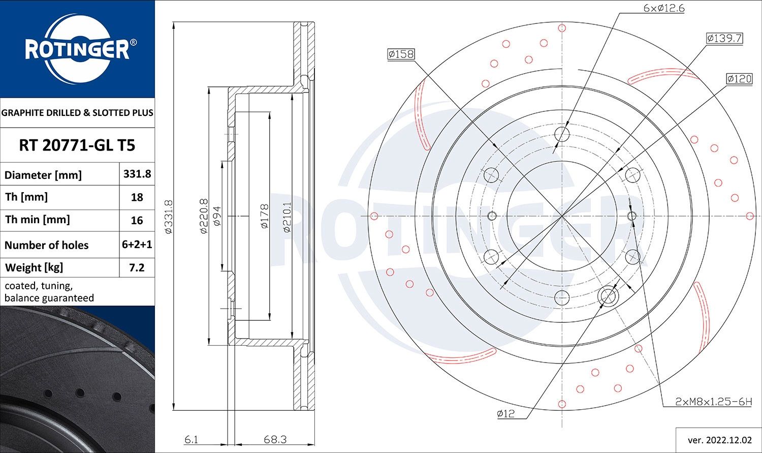 Диск гальмівний MITSUBISHI PAJERO, ROTINGER (RT20771GLT5)