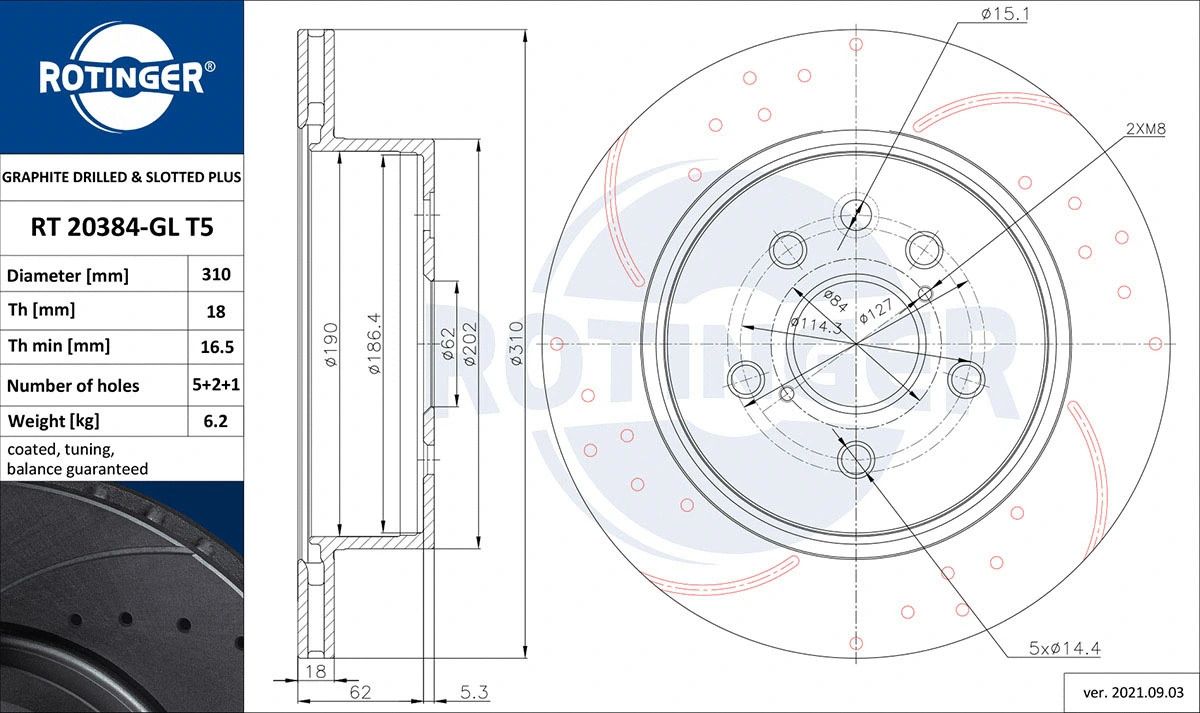 Диск гальмівний LEXUS IS, ROTINGER (RT20384GLT5)