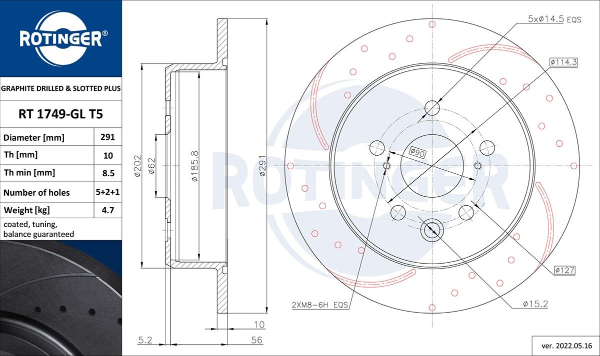 Диск гальмівний LEXUS IS, ROTINGER (RT1749GLT5)