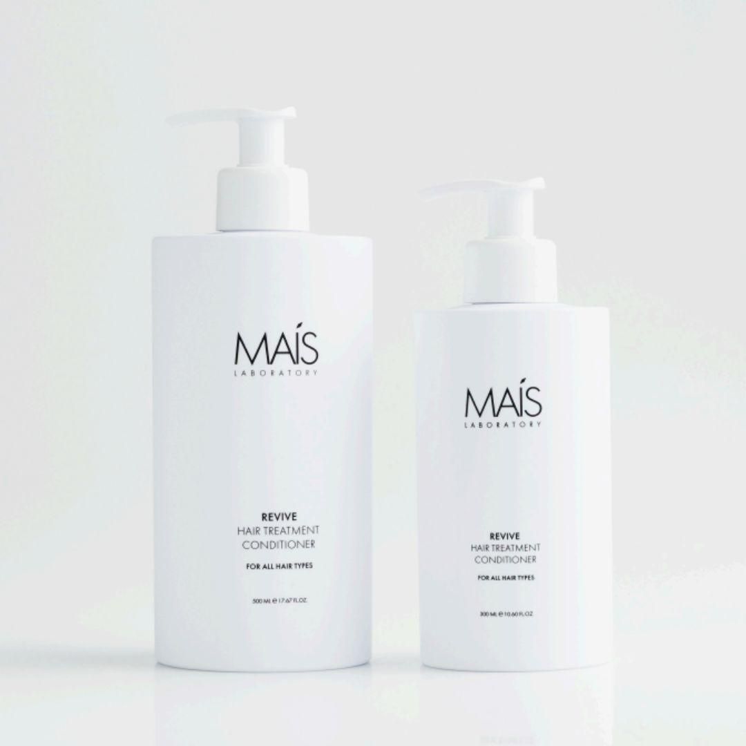 Mais Revive Hair Treatment Conditioner — відновлювальний кондиціонер для сухого, пошкодженого та фарбованого волосся; проникає в структуру для глибокого зволоження та зміцнення, допомагає відновити еластичність і гладкість, підходить для всіх типів, включно з ослабленими після хімічних процедур.