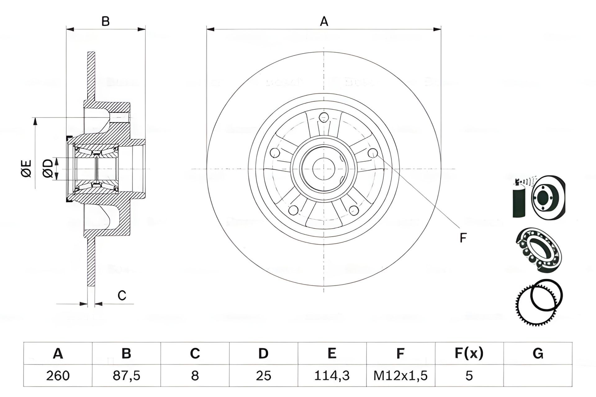 Кількість отворів: 5 Тип гальмівного диска: суцільний Ø фаски [мм]: 114,3 Додатковий артикул / інформація 2: з підшипником колеса; з кільцем датчика ABS Центруючий діаметр [мм]: 54,98 відповідає стандартам ECE: ECE-R90 Поверхня: з покриттям Зовнішній діаметр [мм]: 260 Мінімальна товщина [мм]: 7 Товщина гальмівного диска (мм): 8 Висота [мм]: 87,5 Внутрішній діаметр: 25 RENAULT 432000166R 432009292R 432024629R RENAULT MEGANE IV Хетчбек (B9A/M/N_) 1.3 TCe 160 (B9NC) | Хетчбек | |бензин Н5Н 470 | 117 кВт | 159 к.с. | 11.2018-. RENAULT MEGANE IV Hatchback (B9A/M/N_) 1.8 Blue dCi 150 (B9A7) | Хетчбек | Дизель Р9Н 401 | 110 кВт | 150 к.с. | 02.2019-. RENAULT MEGANE IV Хетчбек (B9A/M/N_) 1.3 TCe 100 (B9N8) | Хетчбек | |бензин Н5Н 470 | 75 кВт | 102 к.с. | 08.2018-. RENAULT MEGANE IV Hatchback (B9A/M/N_) 1.5 Blue dCi 115 (B9A6) | Хетчбек | Дизель K9K 872,K9K 873,K9K 854 | 85 кВт | 116 к.с. | 08.2018-. RENAULT MEGANE IV Хетчбек (B9A/M/N_) 1.3 TCe 160 (B9NC) | Хетчбек | |бензин Н5Н 450,Н5Н 470 | 120 кВт | 1