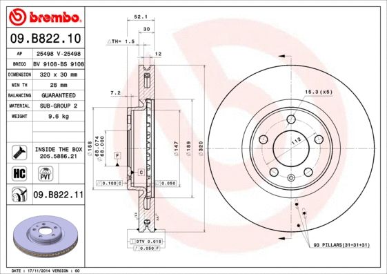 Диск гальмівний AUDI Q5, BREMBO (09B82211)