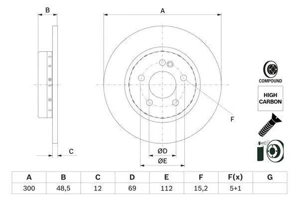 Диск гальмівний CHEVROLET ZAFIRA, OPEL MERIVA, OPEL ZAFIRA, BOSCH (0986478884)
