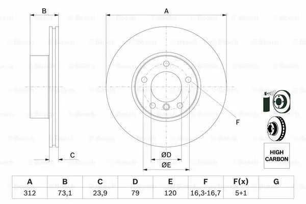 Диск гальмівний BMW 2, BMW 2, BMW 34116774875, BOSCH (0986479381)