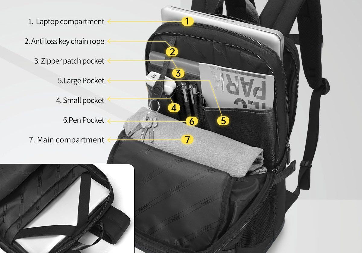 - Модель Tigernu T-B9029 має три місткі відділення, у тому числі: